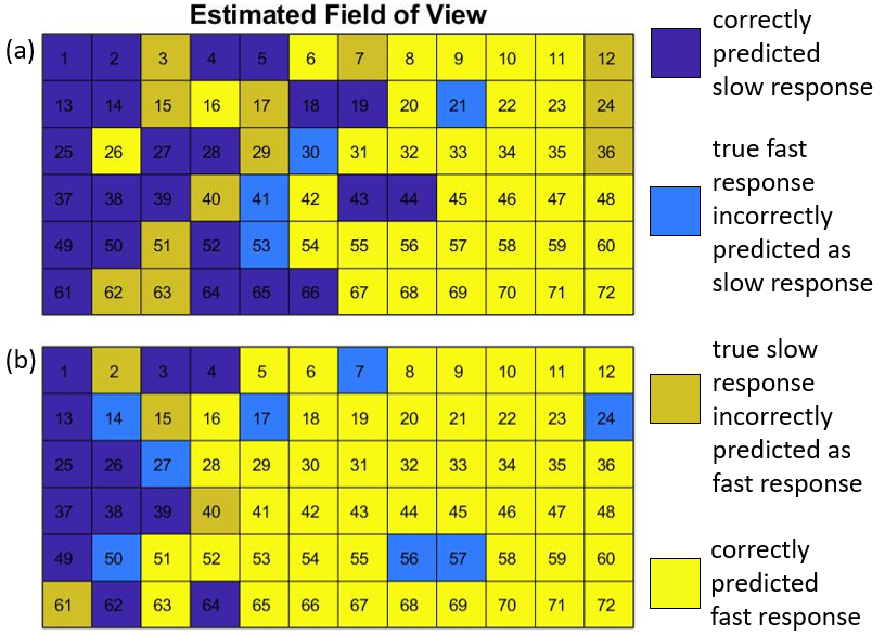A basic diagram showing how AREEN system works (left) and two field of view estimation maps for two subjects (right).